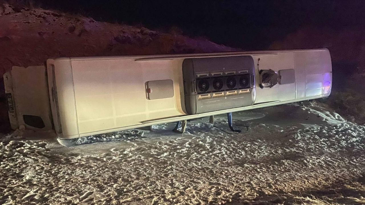 M.T. idaresindeki plakası henüz öğrenilemeyen yolcu otobüsü, Ozan beldesi mevkisinde kontrolden çıkarak şarampole devrildi.
