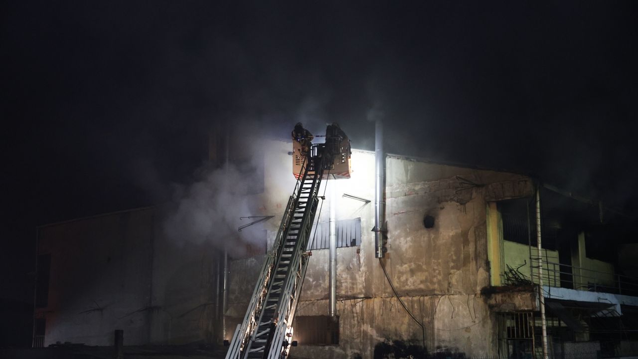 Maltepe Mahallesi Gürün Sokak'ta boya imalathanesi ve metal kaplama atölyesi olarak kullanılan 3 katlı iş yerinde henüz bilinmeyen nedenle yangın çıktı.