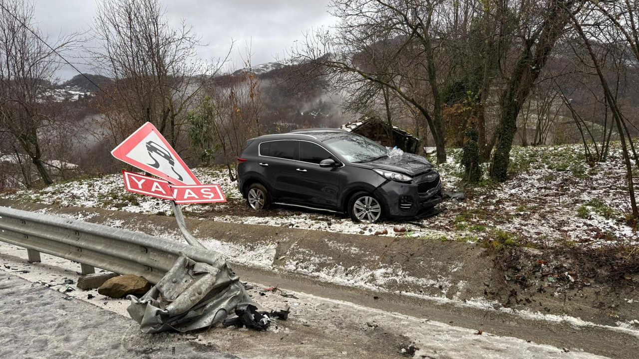 Zonguldak-Karadeniz Ereğli kara yolunda, F.Ö'nün (35) kullandığı 78 ACM 915 plakalı otomobil, kar nedeniyle kayganlaşan yolda kontrolden çıkarak bariyerlere çarptı.