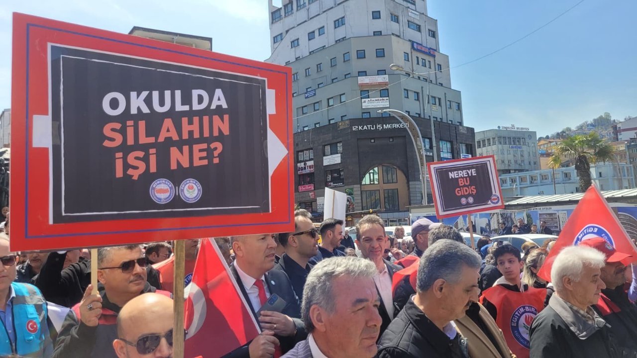 Öznur GÜNEŞ/ZONGULDAK, (DHA)-ZONGULDAK'ta eğitim sendikalarının çağrısı ile iş bırakma eylemi yapan öğretmenler, Şanlıurfa'nın Siverek ilçesinde yaşanan silahlı okul saldırısına tepki gösterdi.